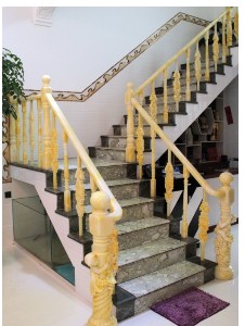 楼梯扶手是由内骨架与树脂外皮两部分组成。内骨架材料为高强度铝合金,外皮材料为直径40mm或50mm新型树脂材料。